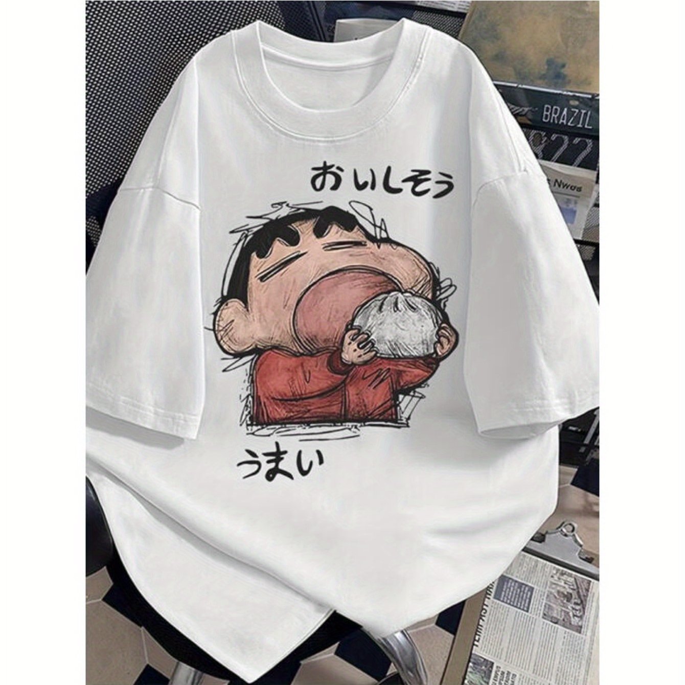 TEMU 남성용 오버사이즈 블랙 플리스 안감 크루 넥 스웨트셔츠, 일본어 문자 프린트 - 캐주얼 루즈핏 풀오버, 긴 소매, 레귤러 길이, 가을 & 겨울에 완벽, 일상적인 편안함 의류 | 편안한 핏 스웨트셔츠 | 플리스 안감