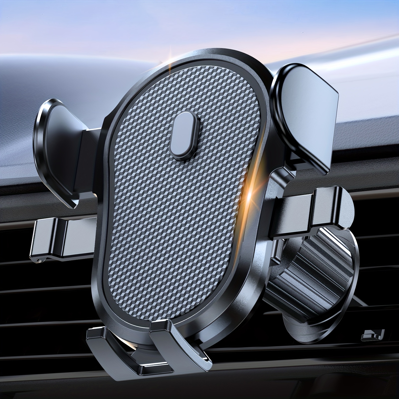 TEMU 자동차 에어 벤트 휴대폰 거치대 (메탈 후크 클립 포함), 원터치 조절 핸즈프리 마운트 (스마트폰용) - 딥 블랙, 튼튼한 구조, 17 Pro Max에 적합