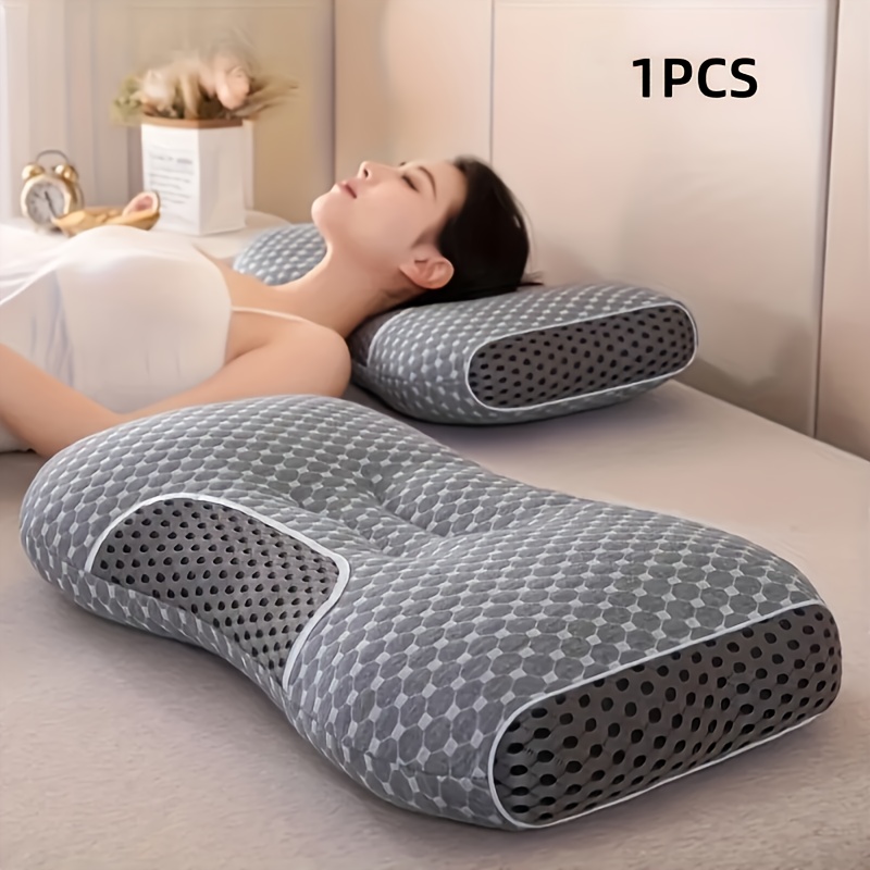 TEMU 1개 그레이 경추 베개 & 전신 지지 쿠션 - 등, 목, 허리, 척추 지원, 옆/등 자는 사람을 위한 요가 침대 베개, 손세탁 가능한 코랄 느낌 커버 (노필 기술) 여성용