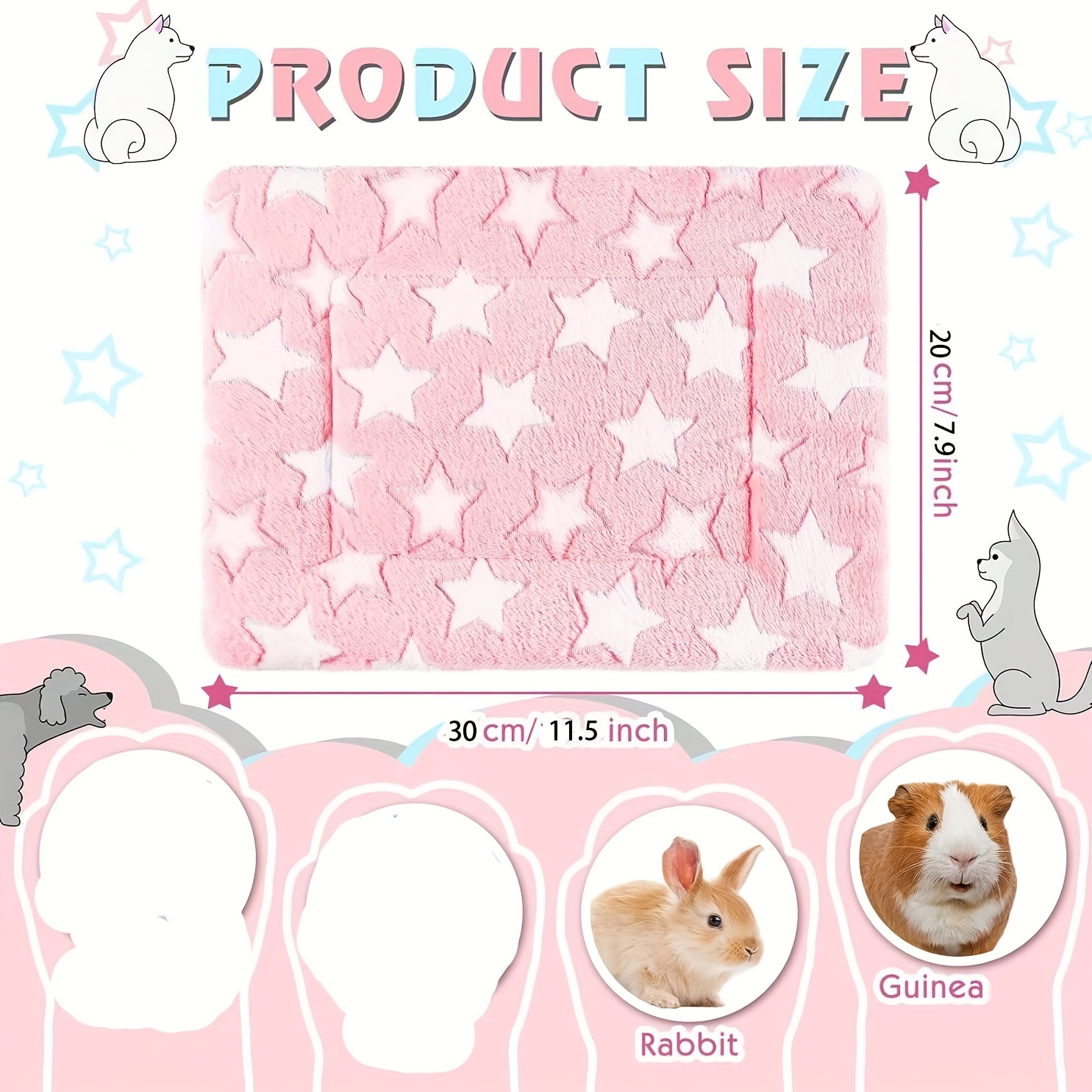 TEMU 1pc 플러시 플리스 하이포알러제닉 햄스터 침대 - 중량의 따뜻한 세탁 가능한 애완 동물 수면 패드 - 토끼, 쥐, 여우 - 핑크 코지 스타 디자인 소형 동물 액세서리 (기계 세탁 가능)