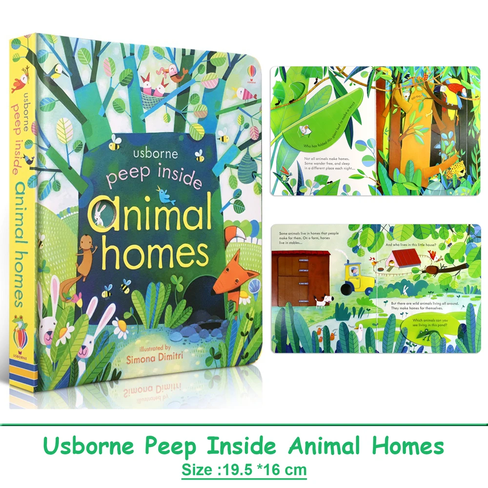 어스본 동물의 집 속을 들어다보기 3D 플랩 보드북 어린이용 몬테소리 교육 영어 그림책