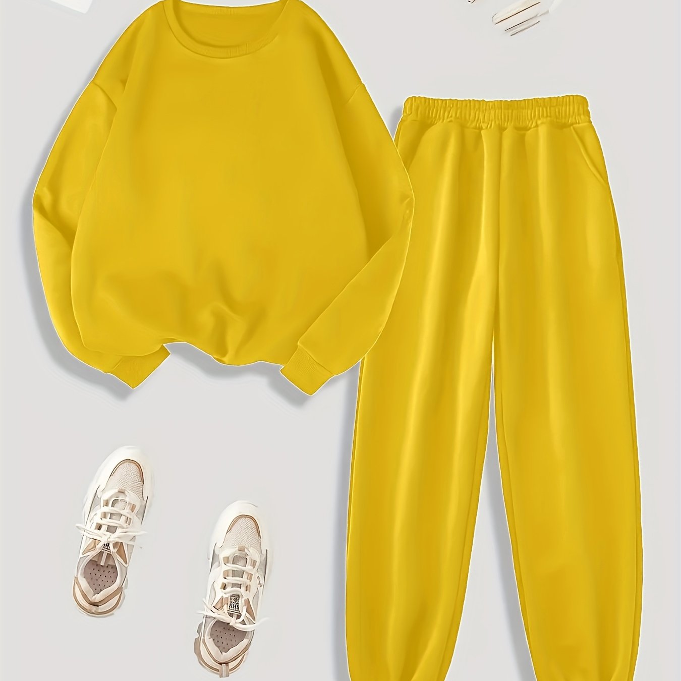 TEMU 새로운 [2pcs 세트] 루즈 라운드넥 슈트 여성용 가을/겨울 긴팔 기모 안감 두꺼운 탑 롱 팬츠 캐주얼 스포츠 투피스 세트