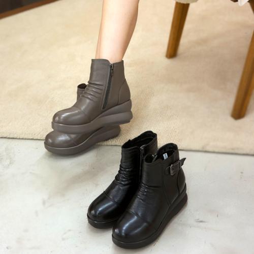 [제이시]제이시 소가죽 7cm키높이 여자통굽 겨울앵글부츠 B061
