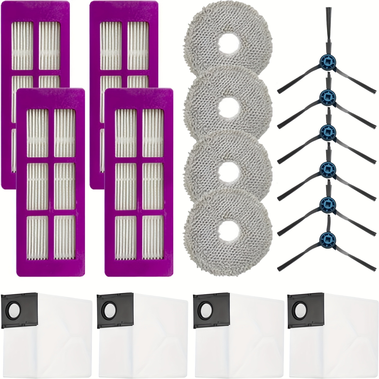 TEMU 유레카 J15 프로 울트라 로봇 청소기 부품 18개 교체 액세서리 키트, 세척 가능 및 재사용 가능, HEPA 필터 4개, 측면 브러시 6개, 젖은 걸레 패드 4개, 먼지 봉투 4개