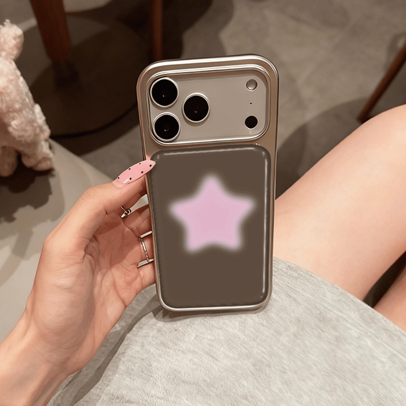 TEMU 휴대폰 케이스 - 아이폰 17 Pro Max/16 Pro/15 Plus/14/13용 전기 도금 레진 휴대폰 케이스, 핑크 별이 있는 브라운 베이스 디자인. 이 에폭시 레진 하드 쉘은 남자친구, , 자매 및 가족을 위한 귀여운 휴일 선물로 좋습니다.