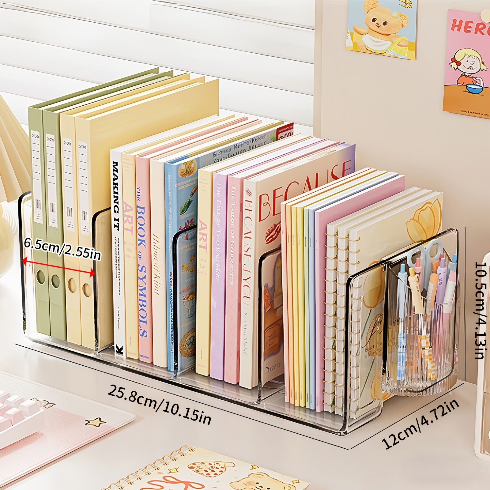 TEMU 투명 아크릴 PP 소재 - 멀티펑셔널 데스크탑 북스탠드 펜홀더 포함, 책, 문구류, 사무용 파일을 위한 네 칸 정리함