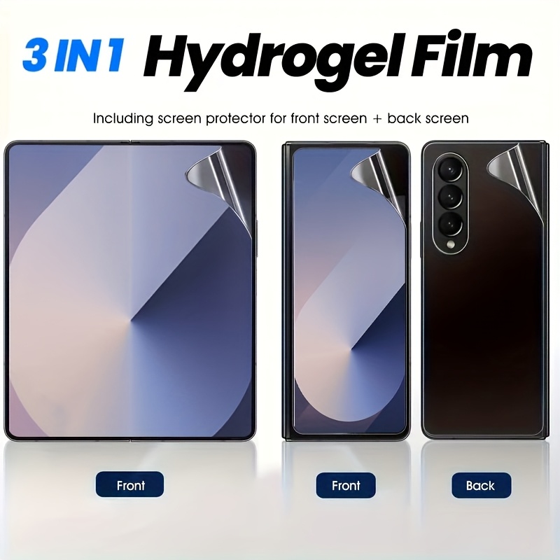 TEMU 삼성 갤럭시 Z 폴드 시리즈용 3-In-1 소프트 하이드로겔 필름 스크린 보호 필름 세트 (모델 7, 6, 5, 4, 3, 2 포함). 이 보호 필름에는 내부 TPU 필름, 전체 커버된 외부 레이어, 뒷면 커버 스크린 보호 필름이 포함되어 있습니다.