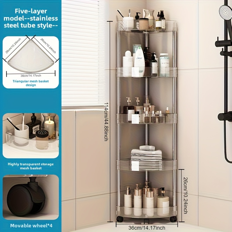 TEMU 세련된 투명 코너 선반, 독립형 다기능 삼각형 수납 랙, 욕실, 화장실, 세면실 및 주방 좁은 공간에 적합, 다층 디자인으로 공간 절약