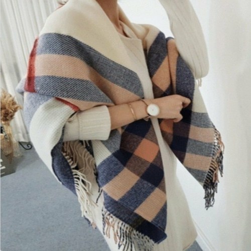 [애슬릿] 빅 체크 중년 여성 겨울 방한 어깨 숄 머플러