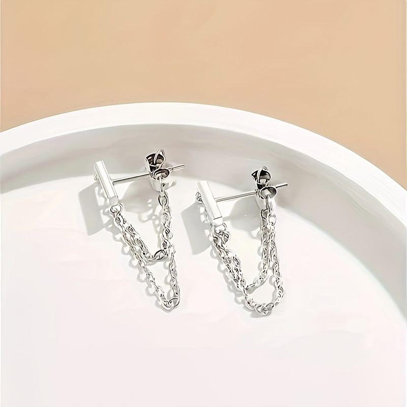 TEMU 일본 스타일과 한국 스타일의 패셔너블한 체인 태슬 귀걸이 한 쌍