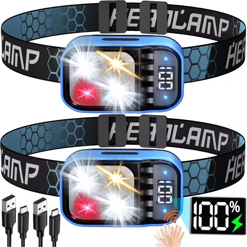 5 * LED 고출력 헤드램프, 슈퍼 브라이트 충전식 낚시 캠핑 조명, 장거리 헤드 마운트 마이닝 램프, 손전등