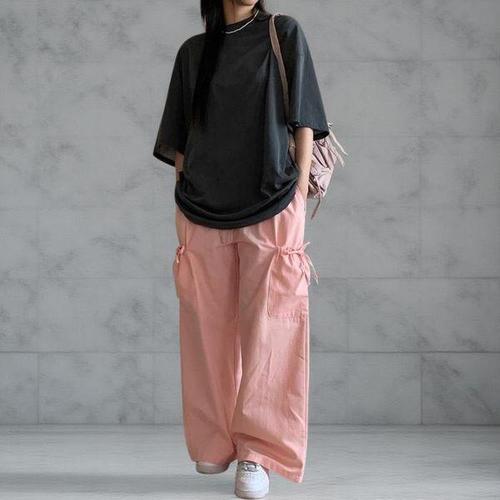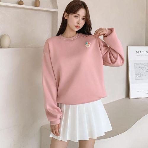 [다잇템]여자 박시핏 U넥 핑크 귀여운 맨투맨