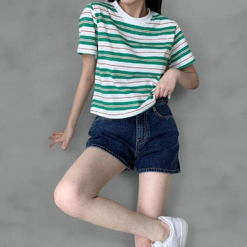 [다잇템]여성 박시핏 코튼 U넥 단가라 반팔티
