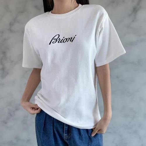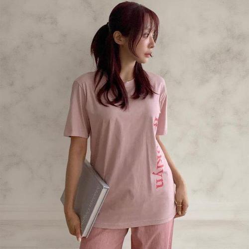[다잇템]여성 코튼 U넥 일상용 필기체 반소매 티셔츠