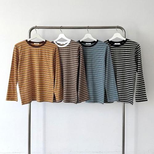 [다잇템_패션]여자 클래식 단가라 박시핏 U넥 링거 티셔츠