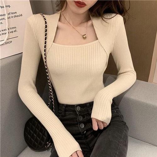 U넥긴팔티 일체형 볼레로 U넥 골지니트 여성긴 WFL6IIY
