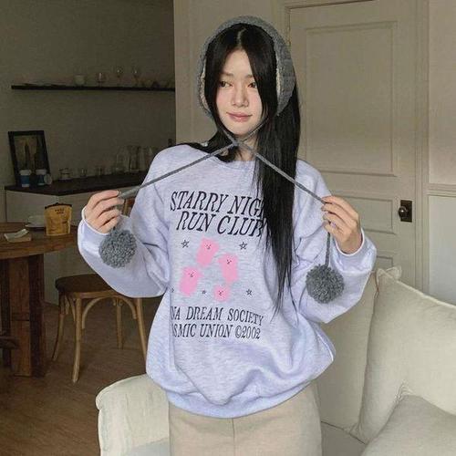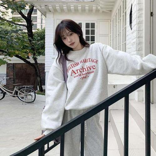 [다잇템_패션]여성용 U넥 미니멀리즘 필기체 클래식 맨투맨티