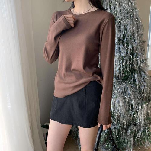 [하프클럽/]U넥 긴팔 티셔츠 슬림핏 기본티 브라운 레이어드 이너웨어