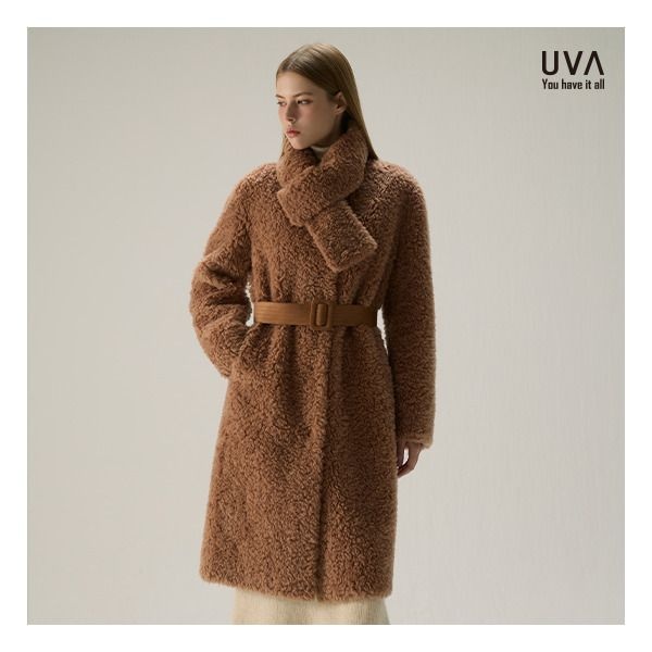 [우바] (런칭가 168,000원) 25FW 호주산 컬링 양모100 롱코트 + 머플러 SET
