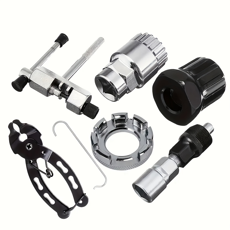 TEMU 6피스 헤비듀티 자전거 수리 도구 키트 - 체인 제거 도구, 바텀 브래킷 및 휠 도구 포함 - 도로 및 휴대용 유지보수용 전문 수리 (필요 없음)