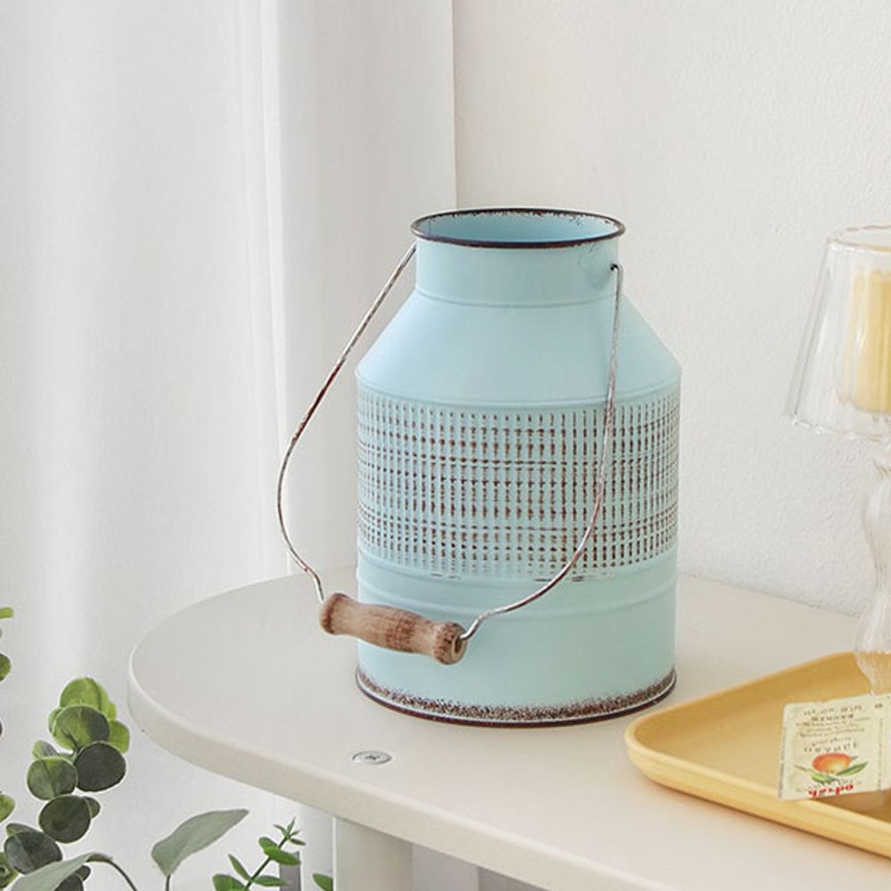 빈티지 철제 틴 버킷 핸들밀크보틀 화병 오브제 앤틱 인테리어 소품