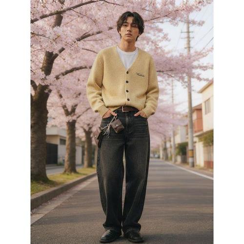 [비바스튜디오]울혼방 번개 자카드 가디건 - DARK GREY