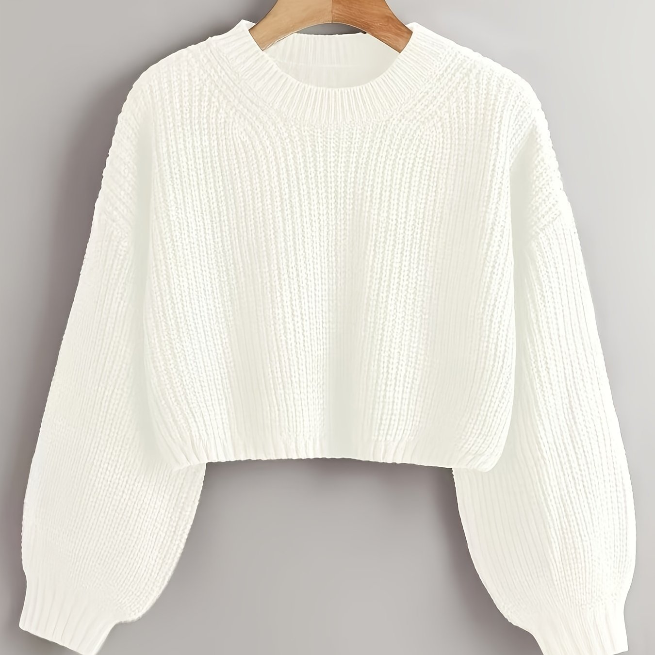 TEMU 랜턴 슬리브 풀오버 여성 라운드넥 스웨터 루즈핏 가을 겨울 크롭탑