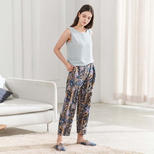 TEMU 빈티지 스타일 플로럴 프린트 롱 팬츠, 봄, 여름에 완벽, 집에서 캐주얼한 외출에 다재다능, 걸을 때 이상적인 루즈핏 특징