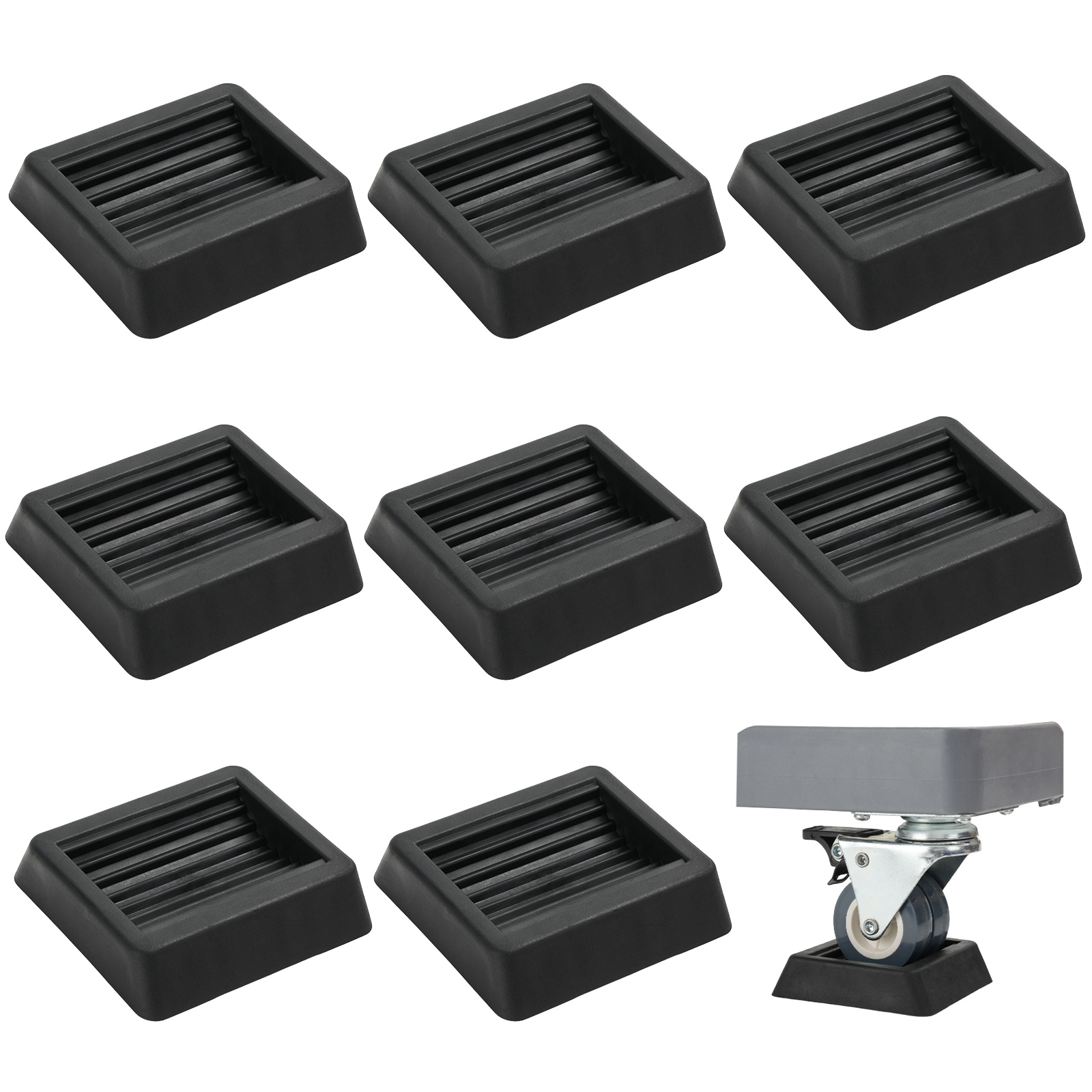 TEMU 8개 범용 휠 고정 패드, 미끄럼 방지 바닥 그립이있는 블랙 스퀘어 고무 가구 캐스터 컵. 강력 고정·미끄럼 방지 캐스터스톱퍼 TPU 내마모 패드, 80×80mm 대형 사이즈, 50–64mm 바퀴 호환, 이동식 가구 고정용, 진동 흡수·바닥 보호 매트, 사무실·공방·홈오피스 필수, 연말연시·크리스마스·신정·설 선물