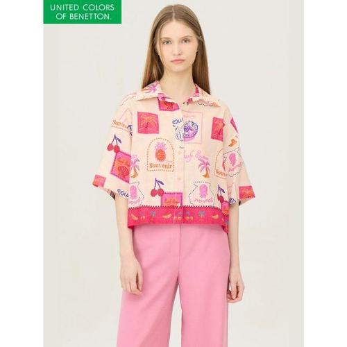 베네통 패턴 린넨 블라우스 BABL50531