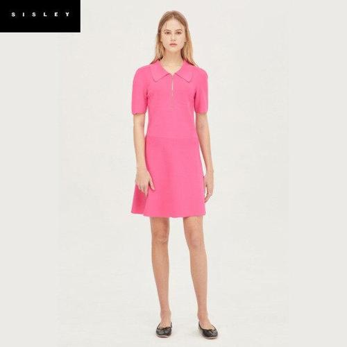 [시슬리]핏앤플레어 카라 집업 원피스_SAKO32331