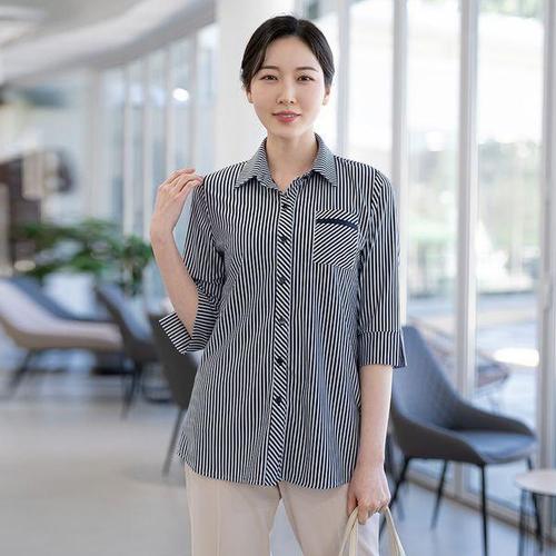 [모슬린]엄마옷 7부 스트라이프 카라 블라우스 MQG127435 마담 미시 중년여성 빅사이즈 할머니옷 50대 60..