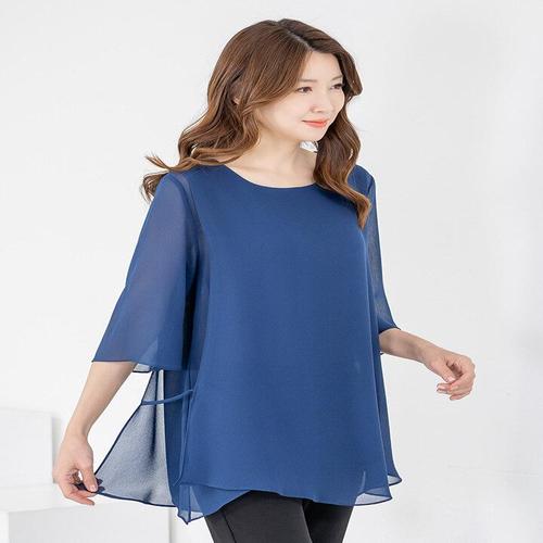 [드리다]여자 여름 빅사이즈 7부 이중 쉬폰 정장 티 블라우스 40-50대 중년 여성 엄마옷 선물 하객 상견..