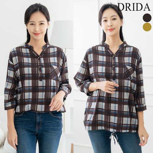 [드리다]여자 가을 체크 7부 반오픈 빅사이즈 스트링 남방 셔츠 40-50대 미시 중년여성 엄마옷 캐주얼 출..
