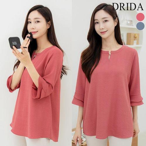 드리다 여성 여름 린넨 마 7부 프릴 빅사이즈 블라우스 40-50대 미시 중년여성 엄마옷 하객 출근 상견례