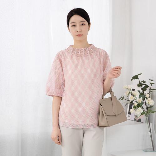 [모슬린]엄마옷 블라우스 쉬폰 7부 이중 라운드 604FGH112 마담/중년여성/빅사이즈/50대/60대