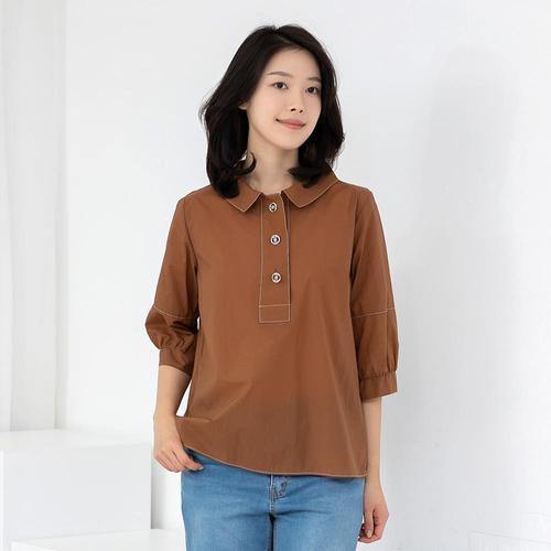 나바바 NB3075 여성 러블리 루즈핏 셔링 퍼프 7부 블라우스