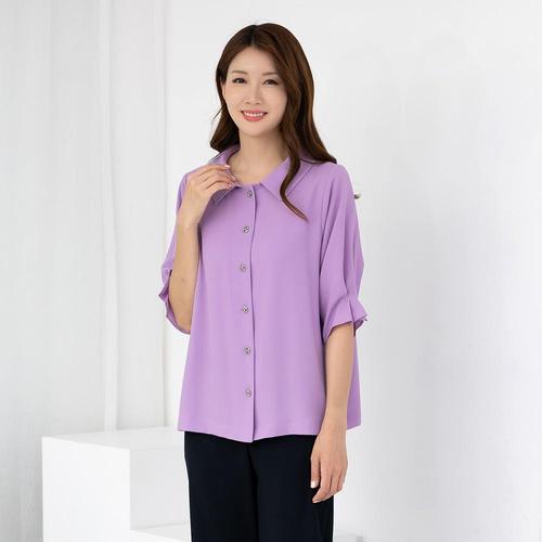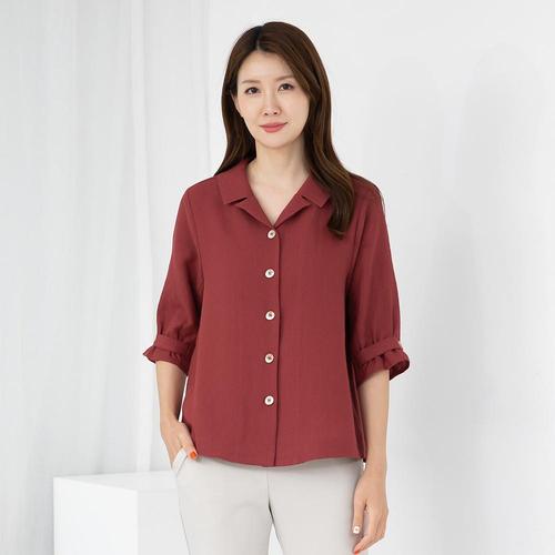 엄마옷 7부 셔링 오픈 카라블라우스 614BNM450 중년여성/50대/60대/마담/빅사이즈/할머니옷