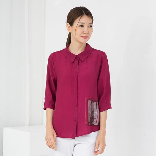 엄마옷 블라우스 쉬폰 7부 이중 라운드 604BNM112 중년여성/50대/60대/마담/빅사이즈/할머니옷