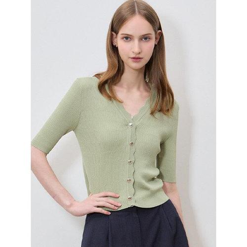 [리스트][리스트(LIST)] 페미닌 골지 스캘럽 반팔 니트 (택가격 128000원)