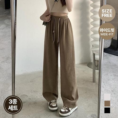 [가비진] 3종세트 여성 여름 바지 링클 와이드 밴딩 팬츠