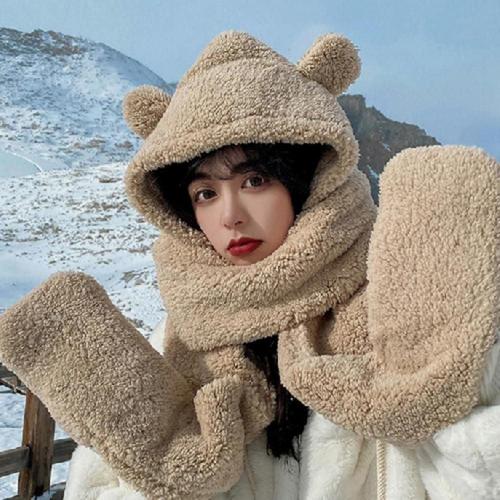귀여운 곰돌이 모자 목도리 장갑 일체형 방한 털모자 워머 WFG0SGE