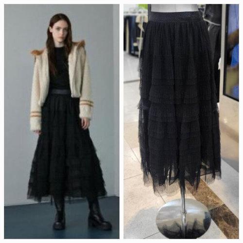 [에고이스트]허리밴딩 롱티어드 메쉬 롱스커트EP4WS260_DG