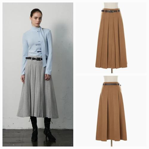 [에고이스트]레더 밸티드 플리츠 롱스커트 EP4WS261_DG