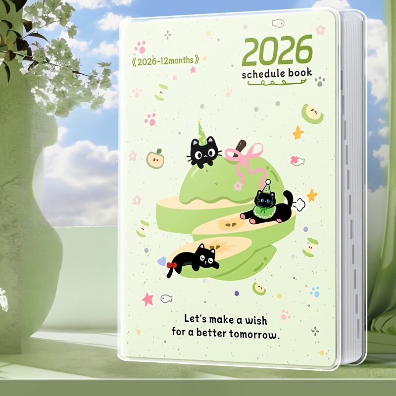 TEMU 2026 데일리 플래너 | 학년별 노트북 (폴리프로필렌 커버, 줄자 페이지, 플렉시바운드 제본, 2026년 1월~12월)