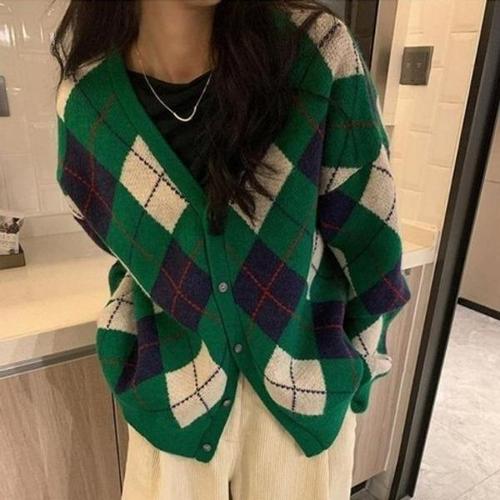 [엄지척]그린 예쁜 아가일 스타일 체형 여유 핏 봄가디건 커버_19798557_667501