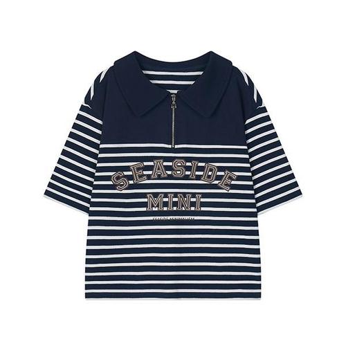 [꼼빠니아][꼼빠니아] 반집업 스트라이프 반팔 티셔츠_CADU4-WKS030