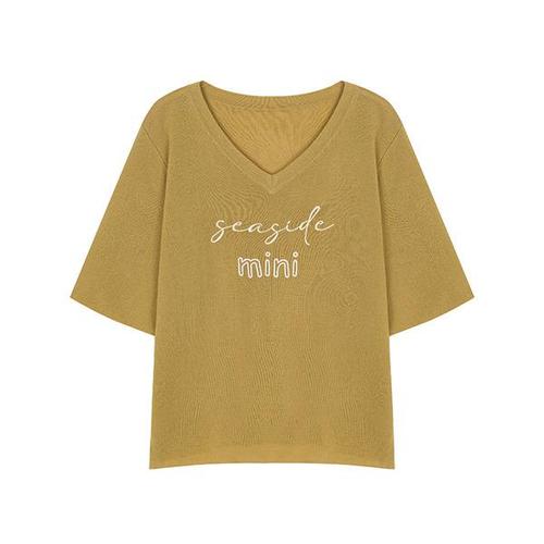 [꼼빠니아][꼼빠니아] 레터링 브이넥 반팔 니트 티셔츠_CADU4-WSL010