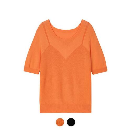 [꼼빠니아][꼼빠니아] 나시 시스루 배색 니트 티셔츠_CADU4-WSL020