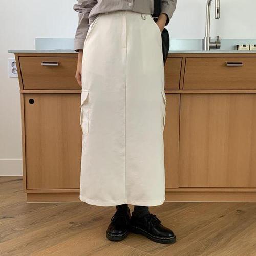 [옷자락] 여자 뒷밴딩 트임 카고 포켓 롱스커트